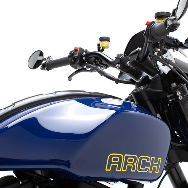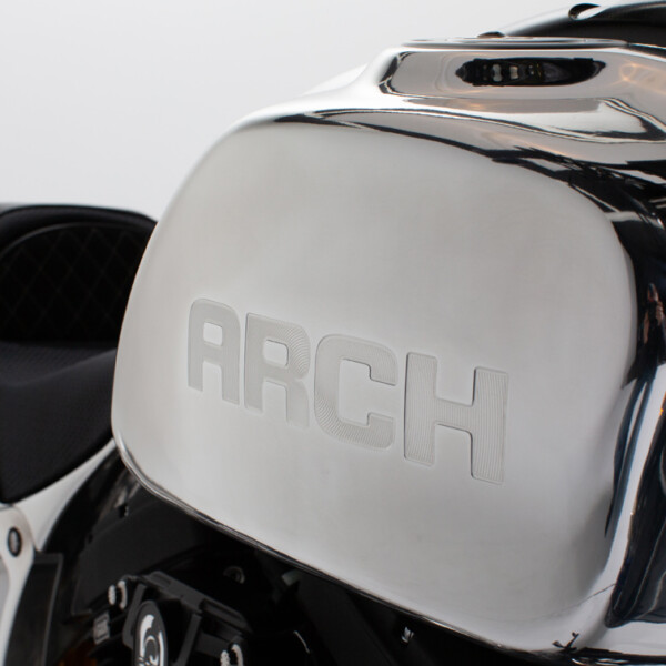 The ARCH Performance Architecture features a steel tube main frame with billet aluminum subframe to provide a rigid chassis structure for dynamic handling. Drivetrain isolation dampeners have been incorporated to help reduce vibration. Components are manufactured in-house starting with 1,200 pounds of billet aluminum. The end result yields approximately 120 pounds of unique components, from chassis side plates, fuel cells, and swingarm to engine covers and more. When outside products are needed, we partner with top manufacturers to create functional components that enhance the riding experience.